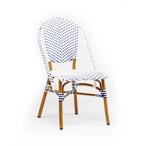 Plavo bijeli aluminijski stolac donijet će vam hladnoću tijekom vrućeg ljeta, stvorite izložbenu sobu u mediteranskom stilu, opskrbite stolicama od ratana koji su slični južnotalijanskom stilu. Ne brinite o koroziji, PE ratan i aluminijska cijev su otporne na vremenske uvjete i-otporne.